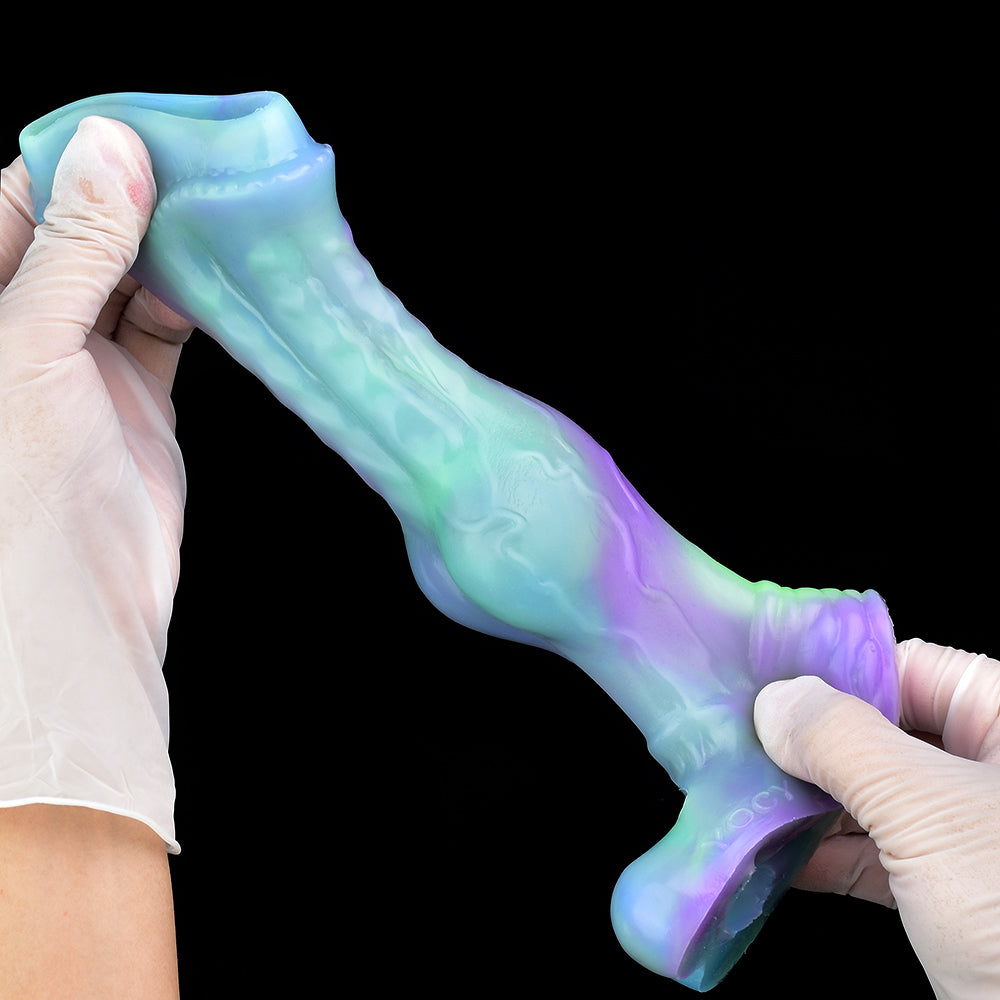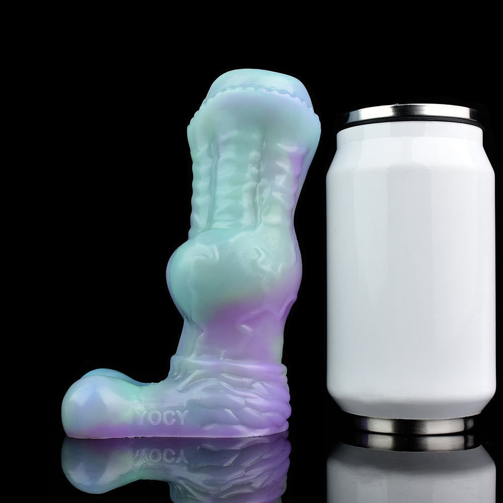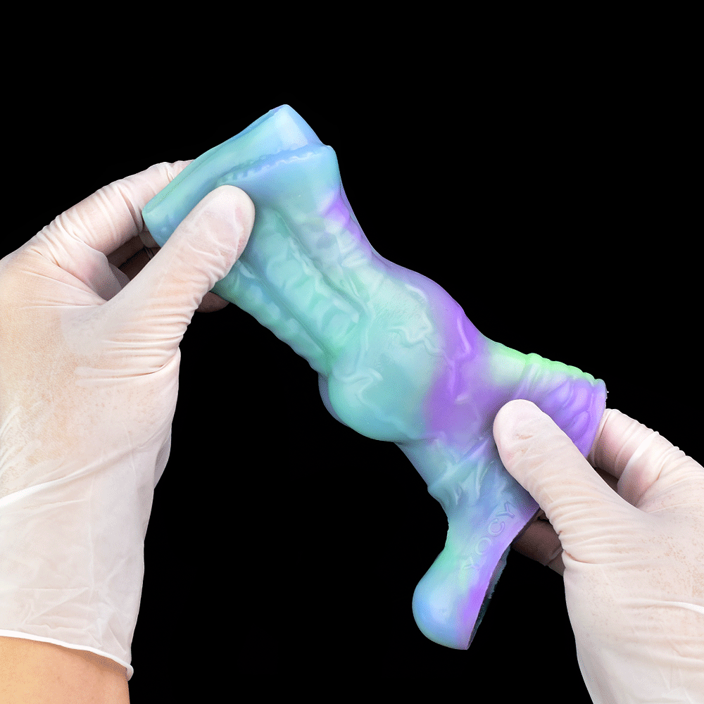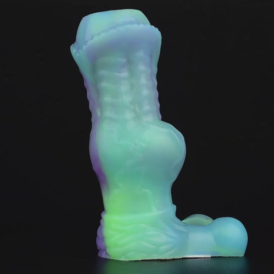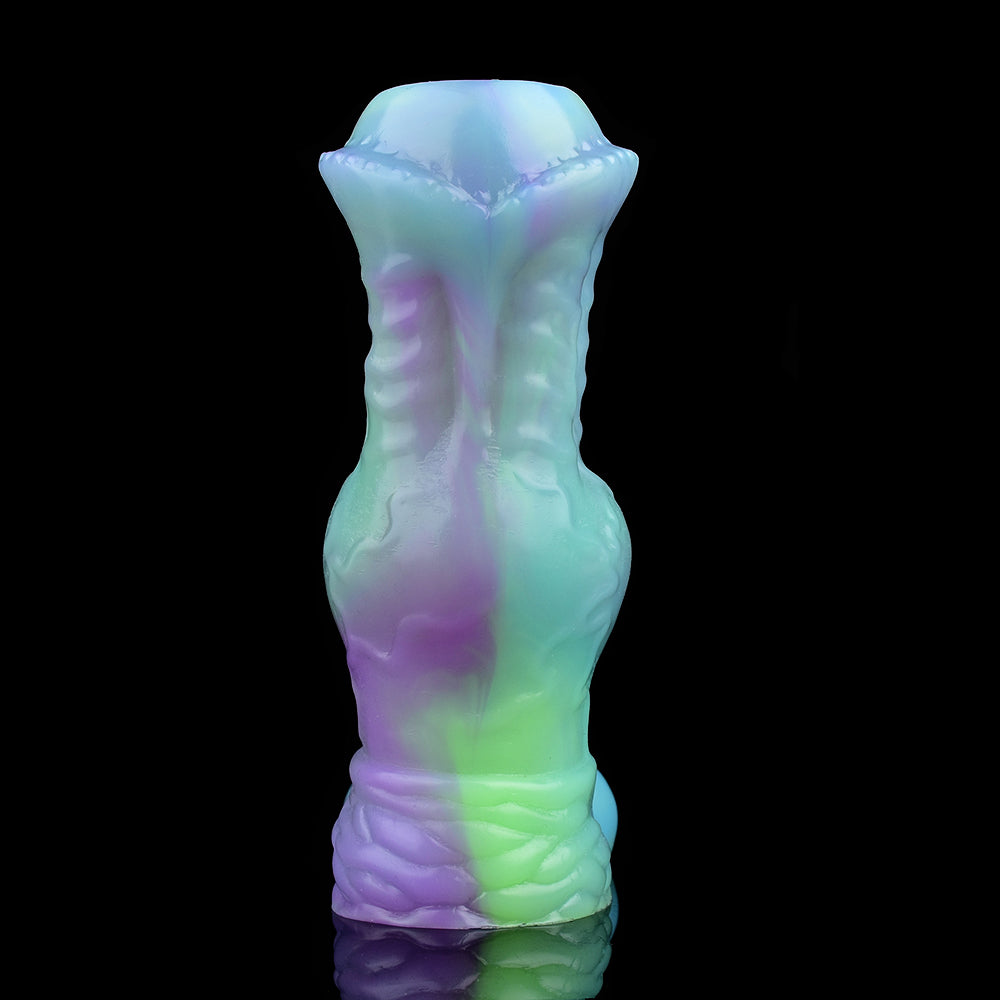 What happens when alien technology meets primal animal instinct? The Xenowolf sleeve—a glow-in-the-dark hybrid that dominates her senses with unearthly ridges and a knot that locks in pleasure. Open-ended for your natural release, or use it solo to light up the night.